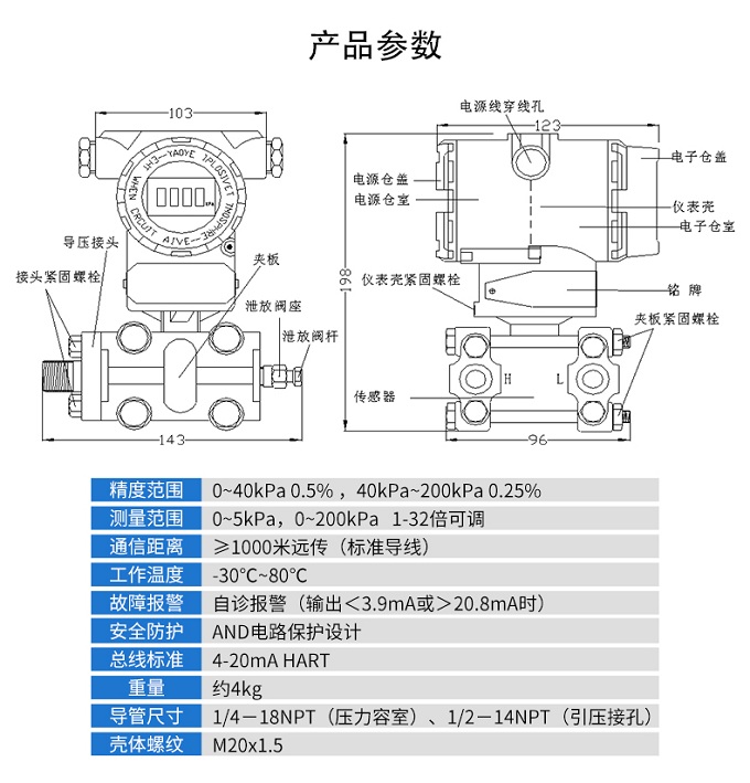 SIN-3051系列壓力變送器利用差動電容檢測的原理,當膜片兩側壓力不一致時,使容室中測量膜片產生位移,其位移量與壓力差成正比,通過電路處理將電容變化量轉換成4~20mA的二線制電流或電壓信號,可帶上458協議或者HART通訊協議功能。該變送器具有堅固抗振,量程,零點和阻尼現場連續可調。